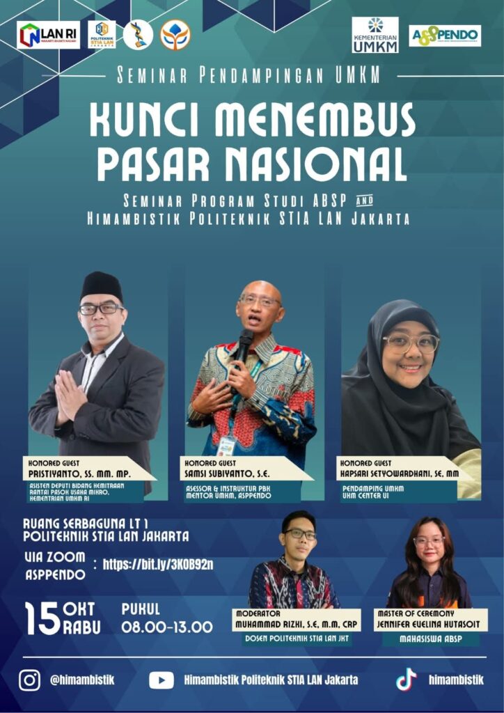 JAKARTA, Politeknik STIA LAN — Di tengah ambisi pemerintah mendorong produk Usaha Mikro, Kecil, dan Menengah (UMKM) menembus pasar nasional hingga global, peran sosok di balik layar menjadi kian krusial: profesi pendamping UMKM. Seminar inspiratif (offline dan online) yang digelar Politeknik STIA LAN Jakarta, Rabu (15/10/2025), mengungkap bahwa pendamping bukan sekadar mentor, melainkan katalisator yang wajib beradaptasi dengan era digital serta memiliki kompetensi ganda.